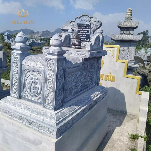 - Thân mộ: Thường được chạm trổ hoa văn tinh xảo như rồng, hoa sen, tứ bình… Tùy theo sở thích và yêu cầu của gia chủ.